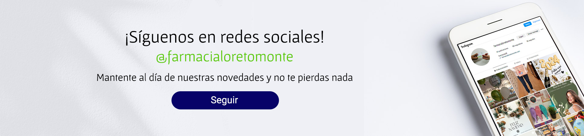 Bienvenido a Farmacia Loreto Monte. Aquí encontrarás todos los productos y marcas que necesitas a un precio y calidad inmejorable. Además, ofrecemos un amplio catálogo de servicios que hemos diseñado para ti con cariño y profesionalidad, como nuestro servicio especializado de ortopedia o nuestra sección de dermocosmética. ¡Ven a visitarnos, esteremos encantados de recibirte!